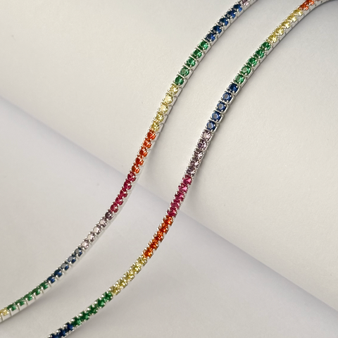 Vintage 925 Sterling Silver Multi Color Zircão Pedra Cadeia Fábrica Atacado Jóias Fazendo Pulseira Anti Manchar Correntes