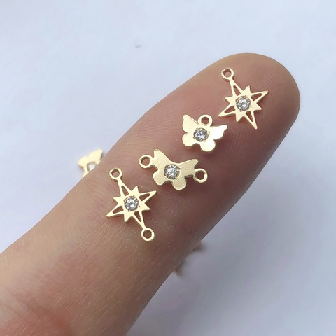 จี้ทอง 14K ชุบทองประดับเพชรซิร์คอนรูปตัวอักษร รูปหัวใจ รูปดาว สไตล์เรียบหรู สำหรับทำสร้อยข้อมือ สร้อยคอ และเครื่องประดับ